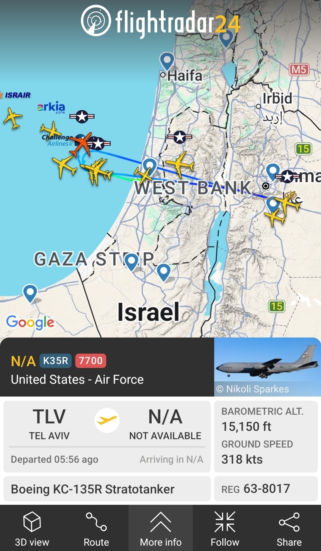 Another KC-135 (registration 62-3556) took off from TLV at 05:17 UTC and has not been tracked returning, indicating it may be the crashed aircraft.