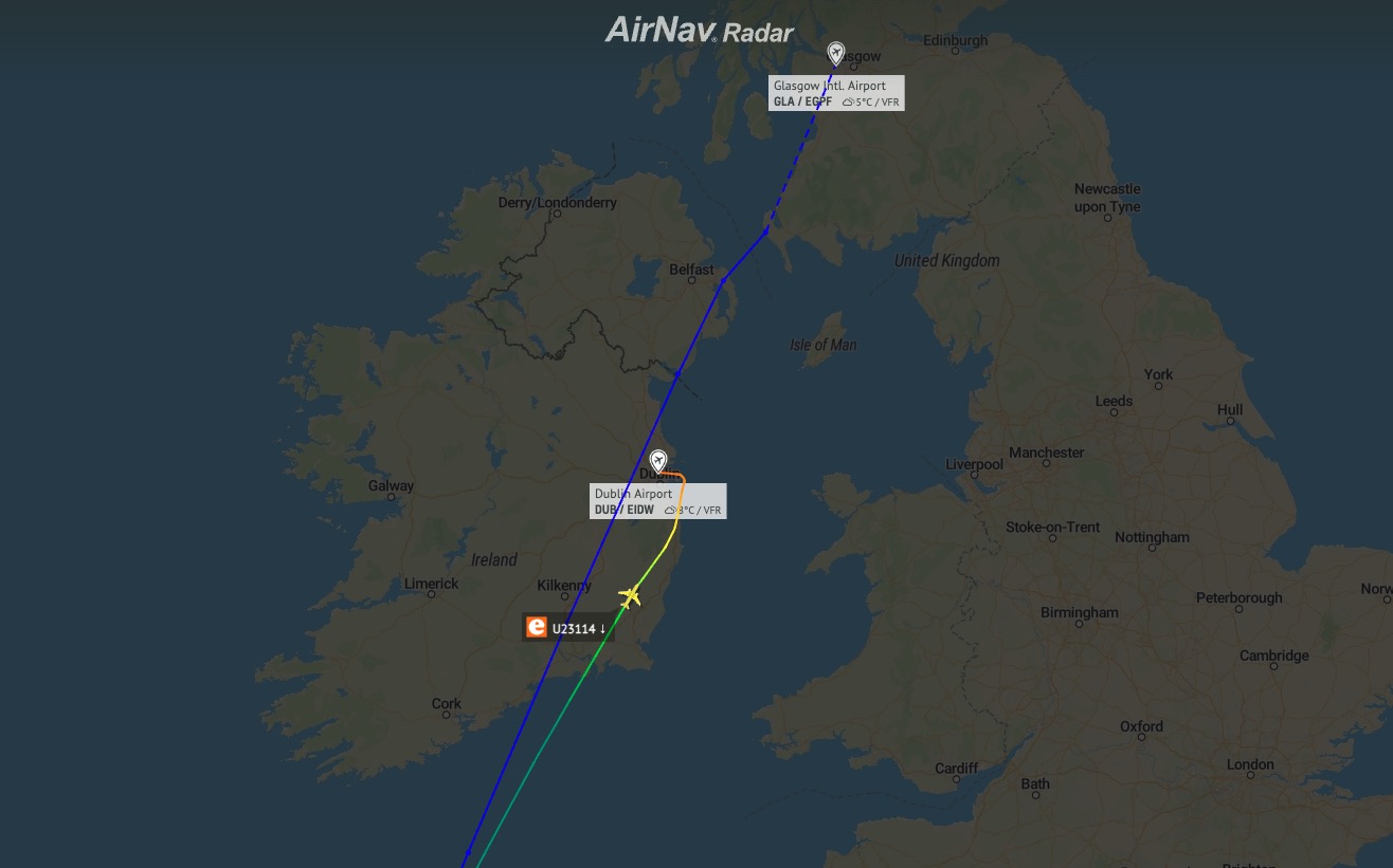 easyJet flight to Glasgow declared an emergency and diverted to Dublin