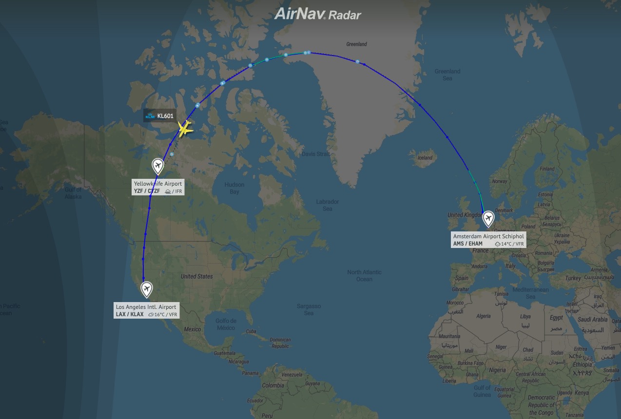 KLM flight KL601 to Los Angeles diverted to Canada following sudden death of a passenger
