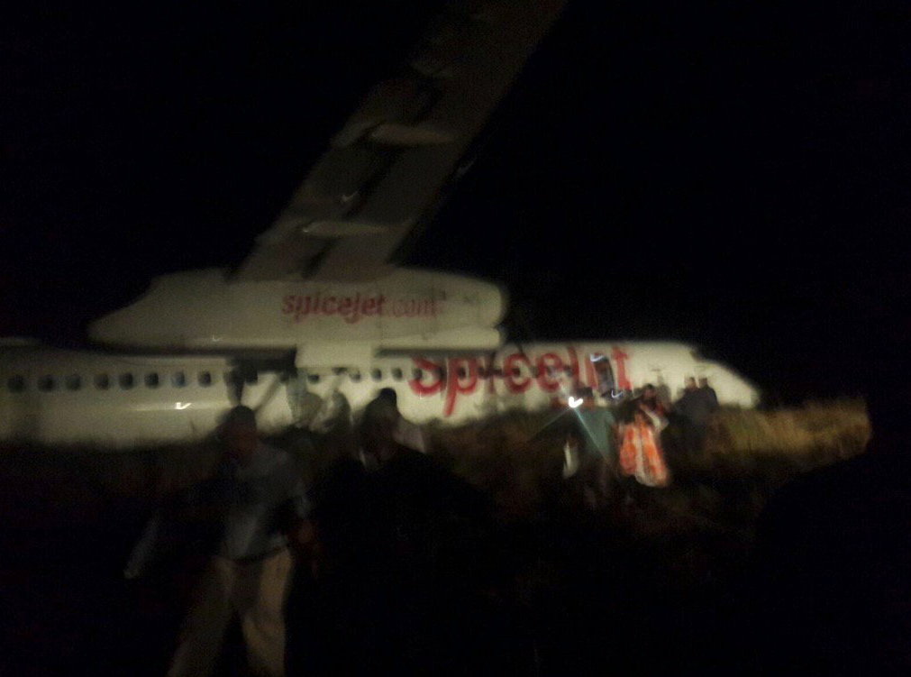 A Spicejet flight from Mumbai skids off runway at MadhyaPradesh’s Jabalpur airport. All 49 passengers and 4 crew members are reported evacuated and safe.