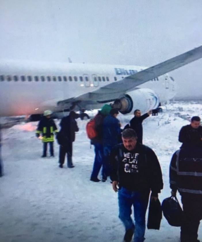 A Boeing 737 flight #0B9301 from Bucharest to Barcelona skidded out the runway at Cluj-Napoca (Romania) due to snow (where a stop was planned).