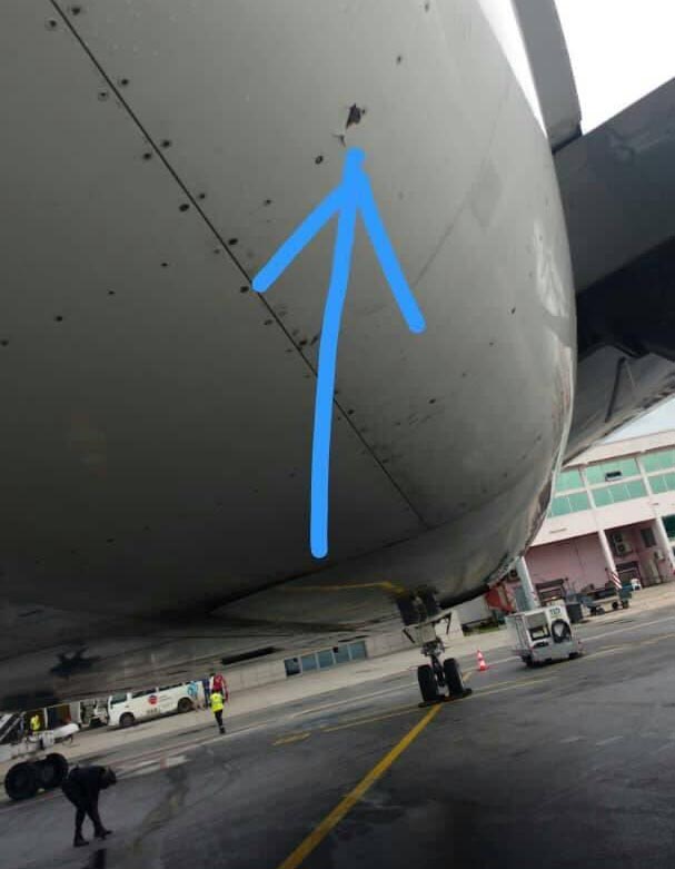 On stand at Pointe Noire with no passengers or crew on board, two shots were heard. The A330-200 (reg. F-GZCK) has suffered damages. One of the bullets punctured the fuselage with a very prominent point of impact, while the other drew a ricochet on the tarmac.