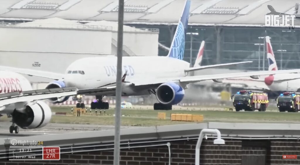 United Airlines flight UA949 departed London Heathrow at 12:23 BST from runway 27L. The Boeing 777-200ER (registration N229UA) stopped the climb at 15,000 feet before turning around.