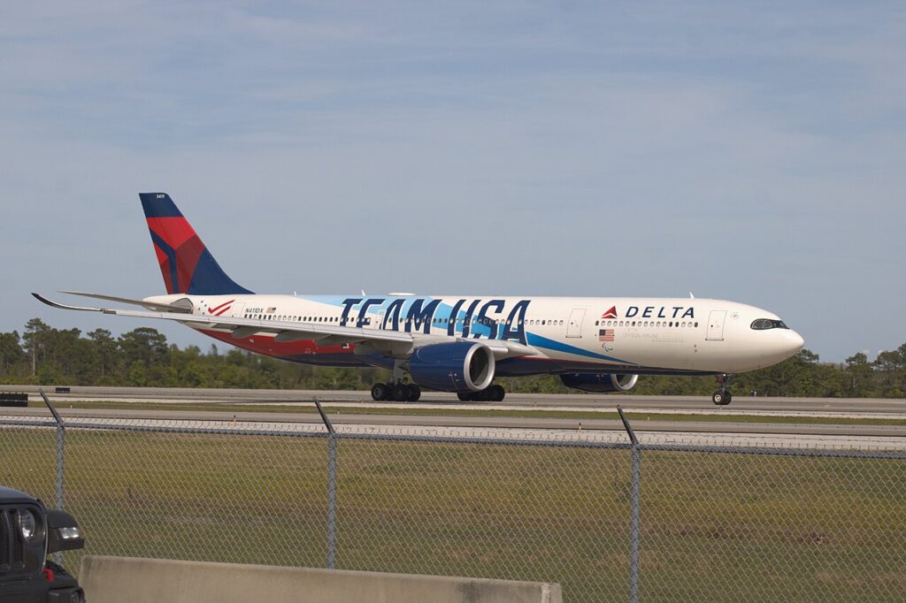 Since December 2021, this aircraft (registration N411DX) has carried a prominent Team USA livery. The theme commemorates Delta’s role as the official airline of Team USA through multiple Olympic & Paralympic Games.