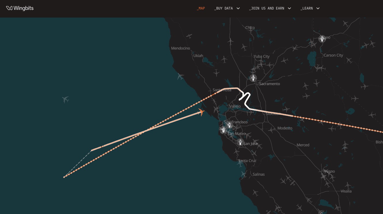 After descending to FL200, the flight is now on approach back to Travis AFB.