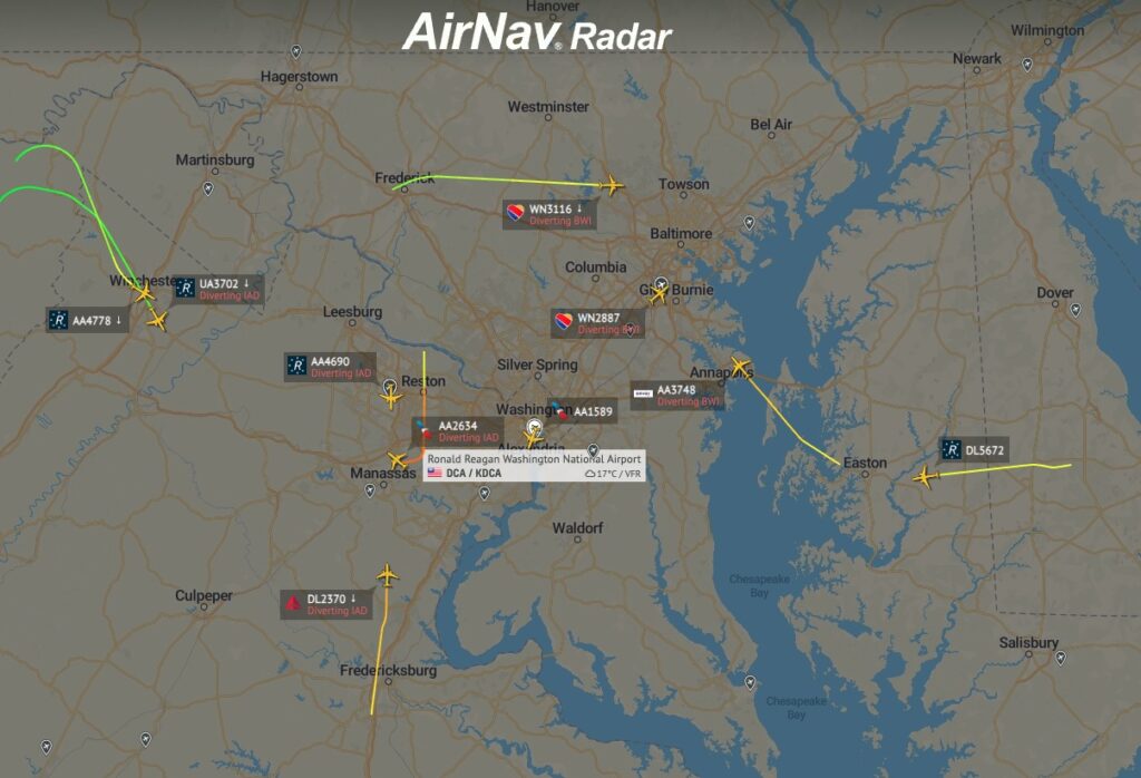 All flights to Ronald Reagan Washington are holding or diverting to alternate airports.