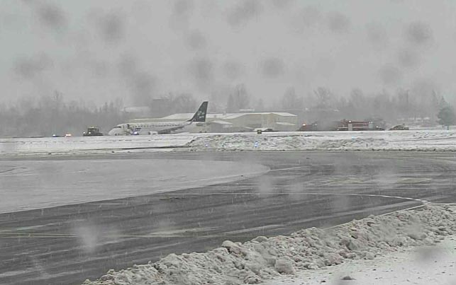 Lithuanian aviation authorities are expected to launch an investigation into the cause of the taxiway excursion, but the airport was under heavy snow at tme of the incident.