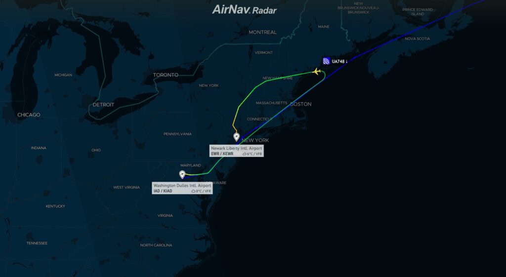 The aircraft spent roughly three hours on the ground in Newark before taking off once more for Europe.