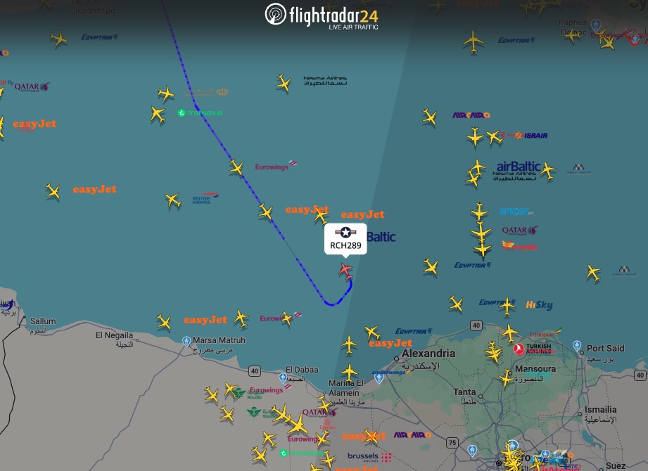 At the time of the declaration, the heavy-lift transport plane was positioned over the Mediterranean Sea, just north of Alexandria, Egypt.