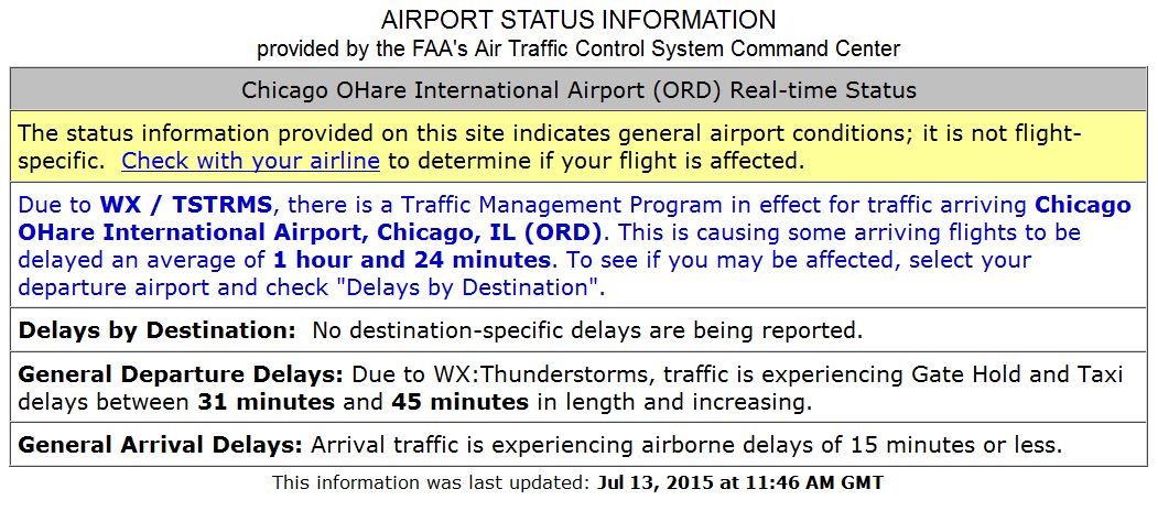 | Screenshot courtesy of the FAA Flight Delay Information Website |