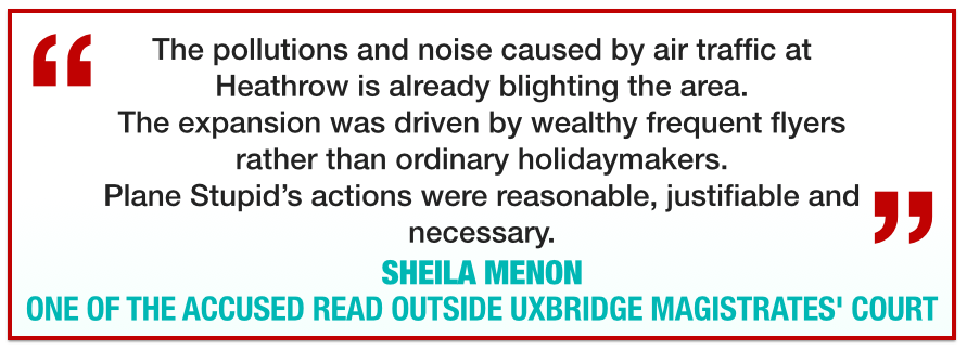Supporters of the opposition of the third runway at Heathrow chanted outside the court “No ifs, no buts, no third runway!”