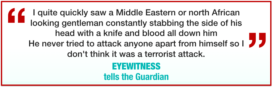 Sitting at Fortnum and Mason Heathrow T5 when a man runs past stabbing himself in the head – security has contained the situation— Neerav Valiram (@neeravval) December 16, 2015