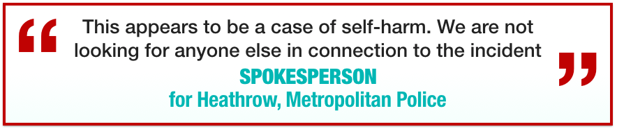Reuters says a man was taken to hospital after repeatedly stabbing himself in the head on Wednesday at Heathrow T5 which triggered panic among the passengers.