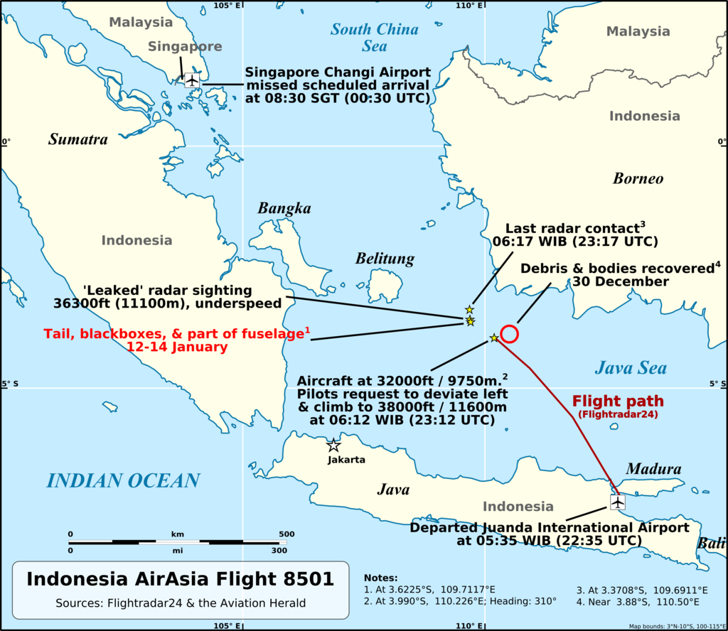 1 year ago today, Indonesia AirAsia Flight QZ8501 (PK-AXC) was a scheduled international passenger flight from Surabaya, Indonesia to Singapore. The Airbus A320-200 was carrying 155 passengers which included 137 adults, 17 children and one infant. The crew consisted of two pilots, 4 flight attendants and a company engineer. Nationality included Indonesia, South Korea, France, Malaysia, Singapore and the United Kingdom.
