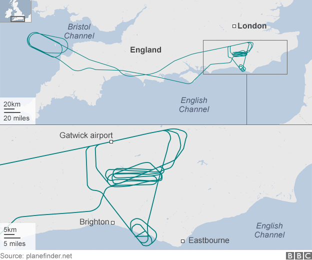 Photos of the 747 circling over East Sussex to burn off fuel.