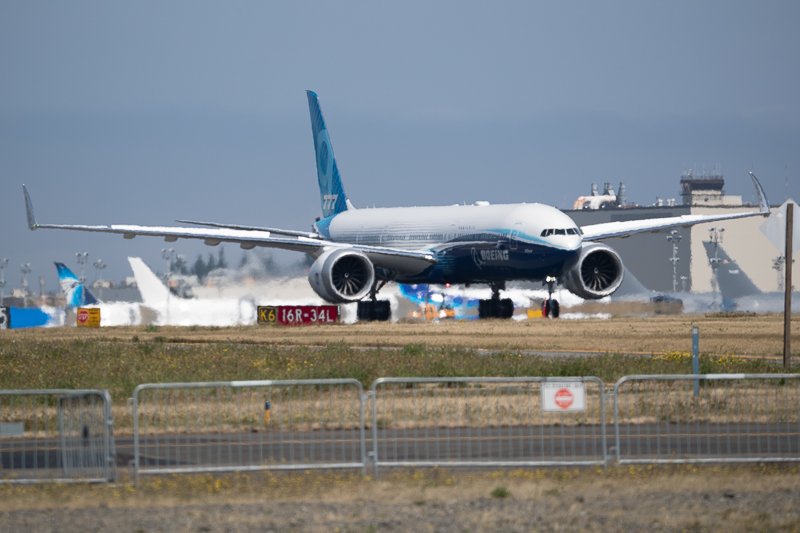 The 777X test aircraft underwent a series of ground tests, including several rounds of low speed passes down the runway as teams of Boeing workers verified the operation of integrated airplane systems and software.