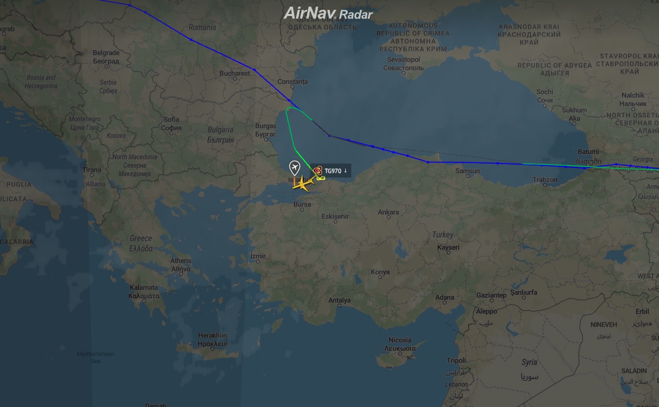 Thai Airways Boeing 777 from Bangkok to Zurich has landed at Istanbul…