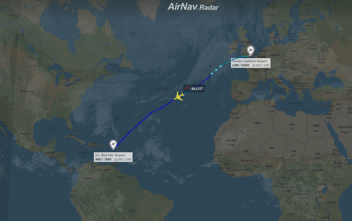 A Boeing 777 to Antigua returned to Gatwick 8 hours after departure…